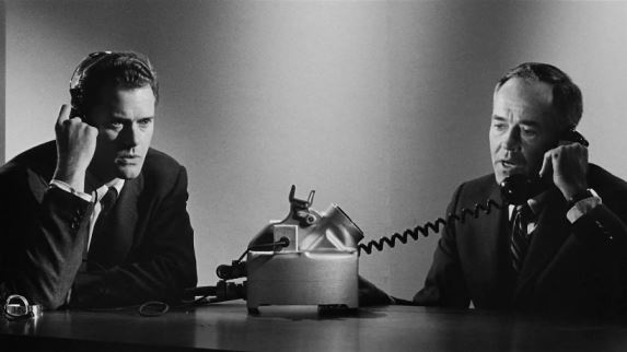 No, I've been wanting to put this scene up because I've already done the similar President/Premier exchange from Dr. Strangelove and it's interesting to do a compare and contrast. The two stories are very much the same—just the occurrence that sparks it and the ultimate horrifying conclusions being a bit nuanced (as if playing with mega-tonnage can be considered "nuanced). Strangelove's source was a 1958 novel by Peter George called "Red Alert", while today's film came from an American best-seller by authors Eugene Burdick (who'd co-written "The Ugly American") and Harvey Wheeler. An out-of-court settlement from a "copyright infringement" suit over "Fail-Safe's" origins resulted in Strangelove being released first, to critical and box-office success, then the next year, Fail-Safe—to critical applause, but negligible box office. Once you see the satire, the serious version seems a lot less serious.