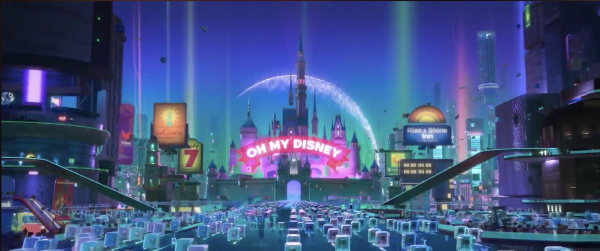 Sooooo...the barcaloungers, back to them. Why my obsession with them? It was around this point in the movie where I found myself sliding down my seat as if I was being pummeled into the very naugahyde fabric of it, from my upright position until I was practically prone. Not sure why; it could have been a number of things. Maybe it was that Venellope ends up at the Disney web-site, and I started to feel like I was being sucked into a corporate version of a black hole where mergered properties start to fold in on themselves, creating a sickening disorientation, like a meta-coma (I laughed when I saw the Disney site being called "Oh My Disney™," thinking it might be a satirical jab of "OMG" where "God"="Disney." But, no, the Disney website is—in reality—"Oh My Disney"). When its acquisitions are trotted out—Pixar, Marvel, Star Wars, Muppets, but not Fox (too soon for product to be produced, it seems), I sank a little further by the sheer heavy gravity that was being displayed.