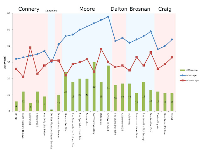 So, who's your favorite actor who has played James Bond (if, in fact, you even give a rip about the series)? It depends on a lot of factors, and a lot of it depends on the times. There are some who say the first Bond you encounter is your favorite (this is not true for me, as my first Bond experience was On Her Majesty's Secret Service!), and I know a lot of Brits who prefer Roger Moore's Bond to all others, which seems odd to me. I've also read that as you get older, the first James Bond younger than you has a hard time being accepted (Again, that's not true for me). Then there's the Bond you're talking about; are you a fancier of Ian Fleming's "book" character or of the one portrayed in the movies? They differ. The book Bond is a bit of a stick-in-the-mud professional with a penchant for fast and easy living, owing to his inevitable expiration date. The movie Bond knows-all, tells-all, is a gourmand, a sartorial snob, and quips...a lot. He has no expiration date. The book Bond had a fussy housekeeper. The movie Bond is the fussy house-keeper. The book Bond not only smoked and heavily imbibed, but was known to have a benzedrine habit before going out "in the field." The movie Bond has dropped all but the watery vodka martini's.
